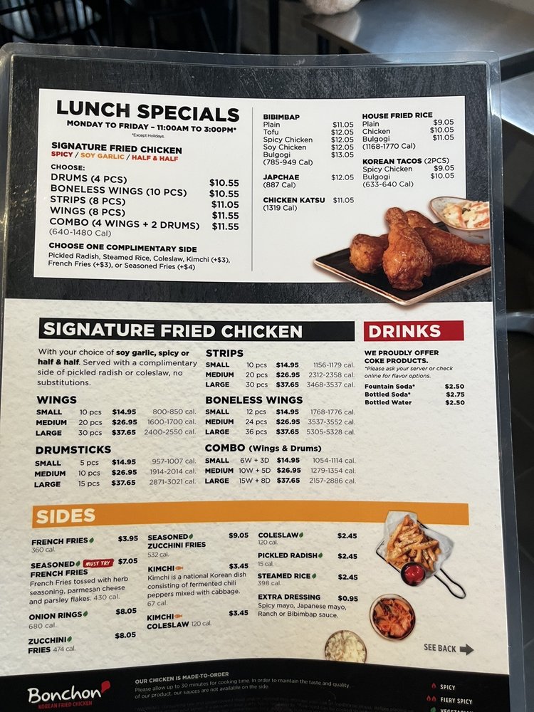 Featured highlights include the indulgent Cheesy Bulgogi Rice—steamed rice topped with bulgogi and gooey mozzarella, as well as the savory Bulgogi Tteokbokki—delicious rice cakes steeped in rich soy garlic sauce and mozzarella cheese. Don’t forget to explore the Lunch Specials, which offer a tasty variety of hand-brushed chicken options that showcase Bonchon’s signature sauces.
